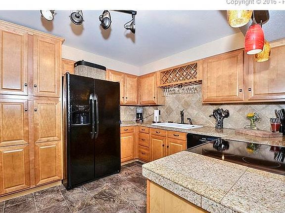One-of-a-kind rancher in established neighborhood with a lot of upgrades. The main floor showcases oak hardwood floors and an updated kitchen boasting granite countertops and a tumbled stone backsplash with newer fridge, dishwasher, and a built-in wine rack. All baths, lights, door hardware, wall texture and paint have been upgraded to provide a very new feel. Current owners invested in a new central heating and air conditioning system, as well as an automatic sprinkler system, stamped concrete patio, new garage door, 24" of attic insulation, a playhouse in the backyard, raised garden beds with irrigation systems, and dog run. You'll also find peach trees, apple trees, and a pear tree adorning the backyard. The basement has beautiful wood-grained tile floors throughout and a movie/entertainment room that can be easily converted into a 5th bedroom or used as is. The laundry room includes cabinets and countertops perfect for any scrapbooking enthusiast, craftsperson, or hobbyist. Rock Island hike and bike trail is directly behind the home for easy access to over 40 miles of Colorado Springs trail ways. Global Village Academy charter school is within walking distance. You'll be perfectly nestled between Academy and Powers boulevards where grocery stores, restaurants, and shopping abound. The roof is certified and this home is move-in ready.