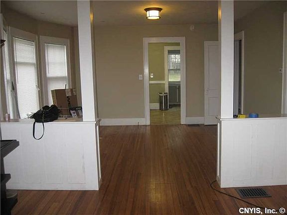 Spacious 2 bedroom Bungalow in West Genesee schools. Remodeled kitchen and bath. Living room and dining room with hardwoods. Fully fenced yard. Full front porch. Central air, garage.