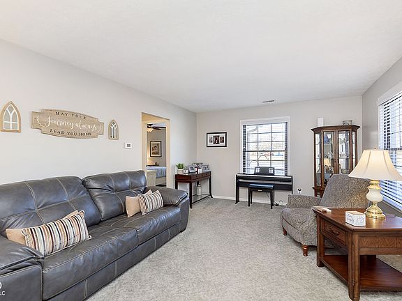 Welcome to 4314 London Court, a beautifully updated single-level condo in the desirable Meadowbrook Manor subdivision! This charming 2-bedroom, 2.5-bathroom home offers 1,422 square feet of comfortable living space with fresh paint, new luxury vinyl sheet plank floorings, and plush carpet throughout. The layout includes two spacious living areas-a cozy living room and a versatile family room-providing plenty of space for relaxation and entertaining. The kitchen is well-appointed with a refrigerator, stove, microwave oven, and dishwasher, all of which stay with the home. A convenient half-bath is located near the main living spaces. Both bedrooms are generously sized, offering ample closet space, and are complemented by two full bathrooms. The laundry area includes a washer and dryer, making everyday chores a breeze. Additional updates include a new water heater (2022) and a recently replaced HVAC system (2021) for peace of mind. The oversized two-car garage provides plenty of storage space, perfect for keeping seasonal items organized. Enjoy maintenance-free living with an HOA that covers water, sewer, lawn care, and snow removal. The home is conveniently located near the community clubhouse and pool, offering great amenities just steps away. The roof is only four years old, adding to the home's value and durability. To top it off, a one-year home warranty is included, giving you extra confidence in your investment. Don't miss this opportunity-schedule your showing today and experience easy condo living in Meadowbrook Manor!