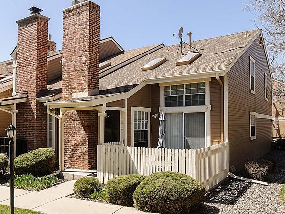 Great 2-story, 3 bedroom and 2 bath townhome in Quincy Hills. End unit with attached 2-car garage. Vaulted ceiling, skylights, fenced patio with visitor parking nearby. Upper level has master bedroom with 3/4 bath and 2nd bedroom with full bath. Loft area is perfect for your office or retreat. Kitchen appliances (refrigerator, dishwasher, stove/range/oven and disposal) included. Kitchen, dining room and living room with wood-burning fireplace and access to the patio and to the garage on the main level. Basement is partially finished with a 3rd bedroom and laundry room. Washer and dryer are negotiable. Window A/C unit and portable A/C unit are available in townhome. Easy access to Cherry Creek State Park. Cherry Creek School District. Great opportunity to buy in Quincy Hills!