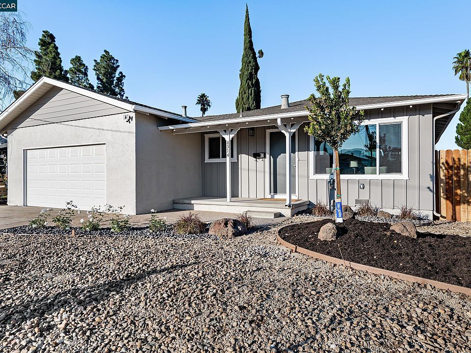 Absolutely darling single level home has been completely remodeled and is ready for you to move into! Beautiful new kitchen with stainless steel appliances, stunning grey cabinetry, Onyx slab countertops, built-in microwave and spacious pantry area. Primary suite faces the rear of the home & has fabulous ensuite bathroom. LVP flooring throughout main living areas & new carpet in the bedrooms. Excellent open floor plan allows for great entertaining with kitchen, dining area and family room all flowing into one another. All new energy efficient dual-paned windows throughout, new metal front door, new French door, new garage door & opener. Wonderful yard with covered porch ideal for dining outdoors all throughout the year. 2 car attached garage with abundant storage space. Great location for commuting!