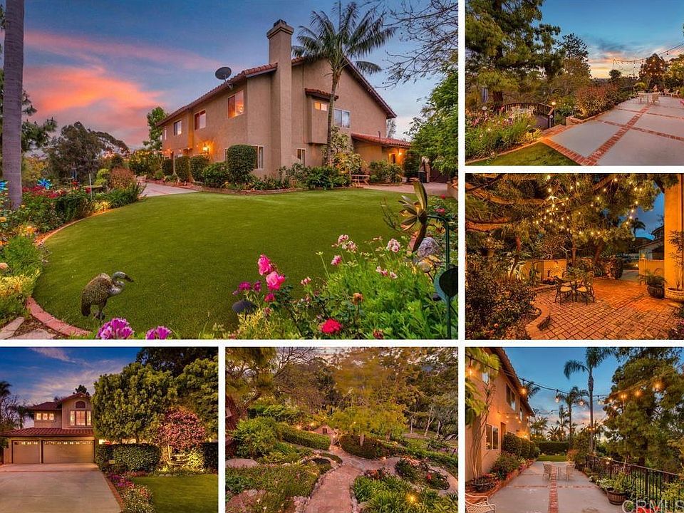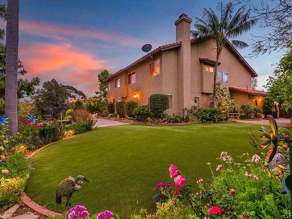 Beautifully appointed classic Carlsbad home, nestled in the neighborhood of the Summit bordering Calavera Hills and Old Carlsbad. The very private lot offers panoramic mountain views and plenty of room for a pool, w/ nearly 1/2 ACRE of lush professional landscaping and multiple terraces. Enjoy the well planned foliage with flowers blooming nearly all year long and the private turf yard with open views and multiple patios for entertaining. Desirable features inside as well: Spacious gourmet kitchen with granite counters, stainless steel appliances, built-in refrigerator and large island/bar w/ rich wood cabinetry, plus fireplaces in the large living and family rooms, Upstairs A/C, leased solar for low electrical cost, vaulted ceilings, custom paint, 3 car garage & more! The first floor features a full bath and bedroom with sliding doors to the private patio…could also make a perfect office. Upstairs you will find 4 bedrooms, including the large master suite with retreat and views. NO HOA & NO MelloRoos! Seller to select services. Room dimensions & sq footage are approximate, per builder & assessor`s record. All MLS & marketing info is approximate & not guaranteed. Buyer to verify all info to satisfy self with the property.