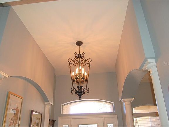 - Interior Features: Ceiling Fans(s), Eating Space In Kitchen, High Ceiling(s), Master Bedroom Downstairs, Stone Counters, Walk-In Closet(s), Crown Molding, Solid Wood Cabinets, Living Room/Dining Room Combo, Tray Ceiling(s)