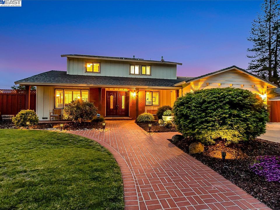 Highly updated 5 bedroom 3 full bathroom or 4 bedroom w/additional den option home in the Mission San Jose award-winning schools Chadbourne Elementary, Hopkins Jr High & Mission San Jose High attendance area. This home boasts approx. $220K in recent upgrades. 1 bed, 1 bath&a den are downstairs. Completely remodeled gourmet kitchen with custom wood cabinetry, quartz slab counters, subway tile full backsplash, top of the line Wolf appliances and breakfast room with fireplace insert, chandelier & built-in shelving. The bright & airy floorplan offers a formal front living room open to the dining area w/designer lighting. The family room features an updated bar w/quartz counter & full backsplash, newer hardwood flooring & a sliding glass door to the backyard custom covered patio. Other features include refinished hardwood flooring, newer int&ext paint, recessed lighting, updated front double doors with beautiful glass inserts, updated bathrooms, updated master suite, central air conditioning system, solar panels for electric (owned), plantation shutters, crown molding. Great outdoor living with a redesigned exterior, an expanded patio, a pergola, a newer Trex deck and a renovated designer pool. Close to trails, parks, restaurants, shops. Easy access to 680, 880, Silicon Valley.
