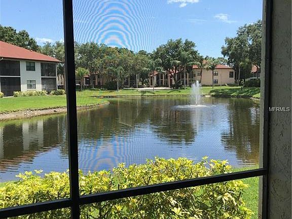 Desirable first floor unit with wonderful views overlooking the pond and its fountain. Unit is in immaculate shape with A/C and furnace replaced 2 years ago. The condo is fully furnished and ready to move in or to be rented as vacation rental. Screened lanai, nice open layout. Enjoy the large Clubhouse with two pools, a spa, ping pong, basketball as well as tennis courts, all that conveniently located to bus, groceries, restaurants and 15 minutes to the gulf beaches. newer Stove and Dishwasher, couch, love seat, new mattress and bock spring in Master bedroom, new dresser and night stand in guest bedroom, all carpets replaced with ceramic tile not long ago. Stacked washer/dryer easy accessible.