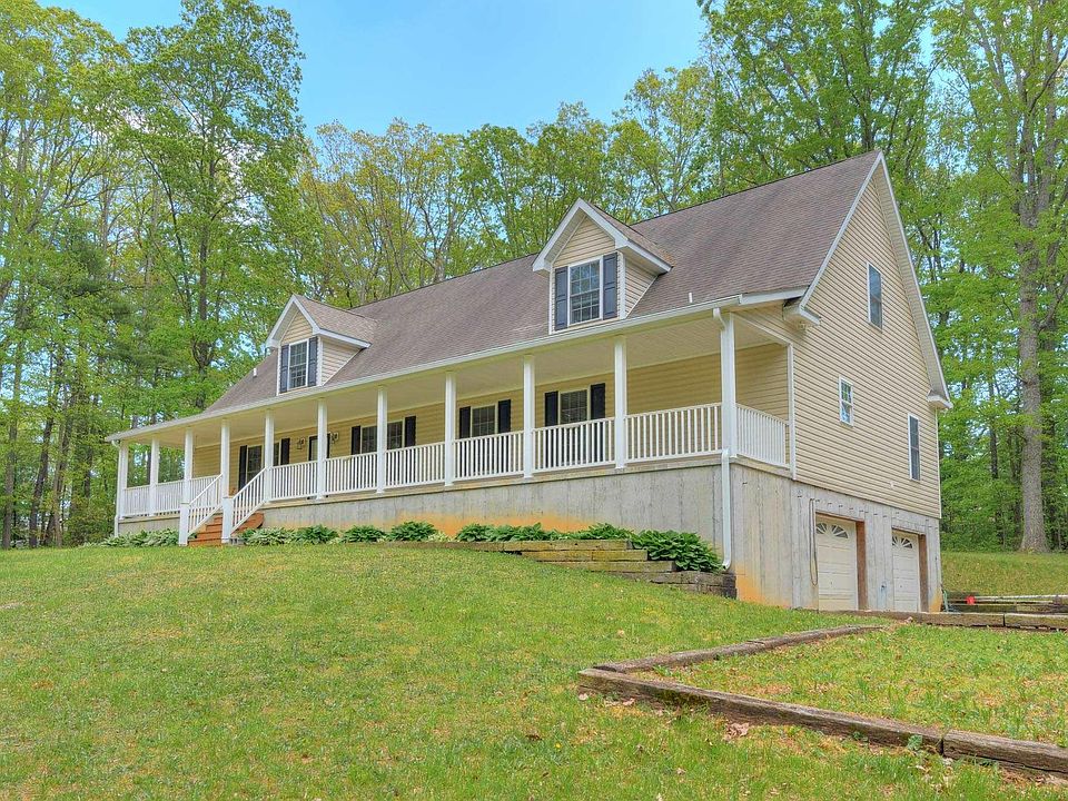 Beautiful Cape Cod style home is nestled on 3.04 wooded acres offering privacy galore yet quick access to Radford and Christiansburg. A massive covered Front Porch allows for expansive views making it the perfect place to enjoy your morning coffee, or simply watching the kids play outdoors. A lovely etched glass front door welcomes you into the Living Room with two sets of double windows and a stunning stacked stone fireplace with a wood mantel. Your family chef will rejoice in the kitchen with lovely maple cabinetry, island with sink, stainless appliances, and pantry all overlooking the deck and private backyard. This main level is also comprised of the Laundry Room, Master Suite and a second Bedroom, both offering private baths. The Master Suite is huge with a trey ceiling, walk-in closet, Bath with jetted tub, separate shower and double vanity. Upstairs consist 2 spacious Bedrooms with walk-in closets and a full Bath. An unfinished lower level is massive has limitless possibilities.