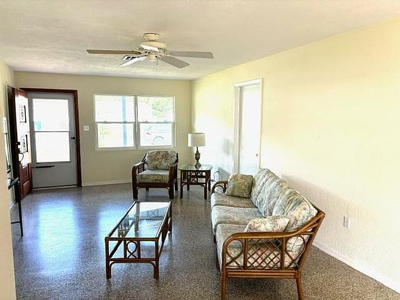 NEW PRICE! SELLER SAYS ''BRING ME AN OFFER.'' This home is perfect for a 1st time homebuyer, a downsizing need or good investment for a rental. Beautiful level lot with a nice size shed in the rear with a floor and workbench. Good place for all your lawn equipment/toys. Plenty of room for a pool or firepit. House is set back from the street allowing for an extended driveway for your guests. Lots of updates; Roof is 2 years old, HVAC 2 years old, Hot water heater 5 years old, Windows are 3 years old with screens, Newer front storm door, Exterior door to laundry is newer, Primary bath completely remodeled, Kitchen updated, Terrazzo floors have been redone, Laundry is inside but not under air, Washer & Dryer stay. The enclosed rear porch is perfect for an extended entertainment space off the dining area or just a quiet area to exhale from a busy day. Bring your imagination for decorating.