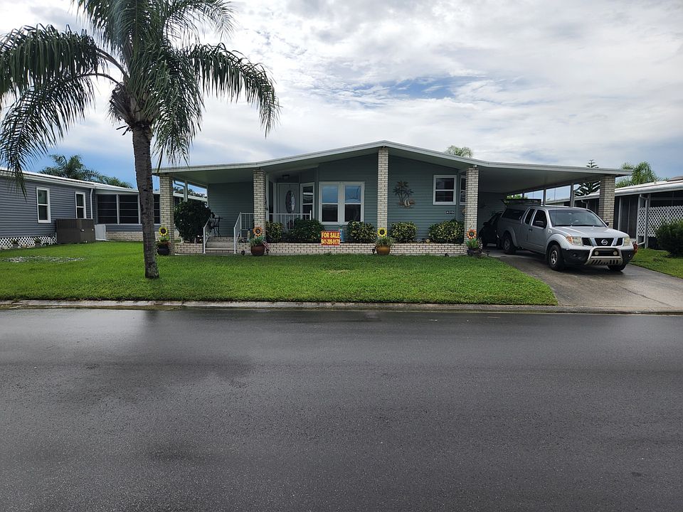 Celebrate the beauty of this luxurious, delightful, and immaculate 2 bedroom 2 bath home with an attractive lake view gracing our Florida skies. This home displays an open floor plan with a bright kitchen that offers a stainless steel 2020 refrigerator, a 2022 cooktop with range, a 2020 dishwasher, a 2021 microwave, and a coffee nook, where you can brew your favorite fresh coffee. The floors are brand new and waterproof, with wood laminate, and tile. There is an attractive Florida room fully enclosed, ceiling fans, and 2 walk-in closets that add an extra touch to this home. The ceilings and walls are drywall and there is a pantry as well as a laundry room inside. There is a roof over and it is 1 year old. The carport fits 2 cars and there is a large attached storage shed as well as another patio outside closed in with an area also overlooking the lake where you can sit and relax that is not enclosed. There are lots of updates to this wonderful home, in fact as you tour it you will learn to love it because of its brightness and spaciousness. There is also plenty of storage. The Lot rent is 1205.00 and includes water, trash, lawn care, and sewer. Located in Colony Cove, a 55+ community, this great resort-style park offers clubhouses, 6 pools, shuffleboard courts, billiards, a game room, and a library. Close to I-75 making Sarasota and Tampa airports easily accessible as well as restaurants, shopping plazas, medical buildings, and our beautiful Florida Beaches. This park is also pet friendly and has a large dog park to which you have access too. Call me to view it, I will be more than glad to show you this well-maintained home, this is sure a slice of heaven in paradise as you tour this home with me. You will not be disappointed. All listing information is deemed reliable but not guaranteed and should be independently verified through personal inspection by appropriate professionals. Integrity Mobile Home Sales cannot guarantee or warrant the accuracy of this information, measurements, or condition of any property. Measurements are approximate. Lot rent is subject to change.
