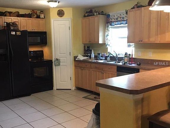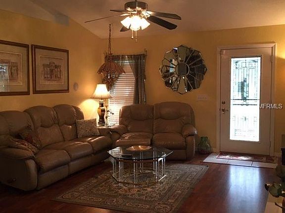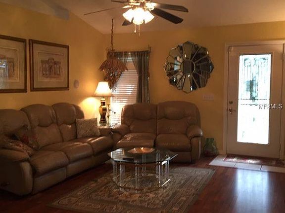LAKE HARRIS less than a mile away with NO HOA FEES! 3BR/2BTH corner lot home with split floor plan. Fenced in backyard. Glassed in lanai area with tile floor and door to outside. Kitchen has lots of cabinets, pantry and a breakfast bar. Shed in the backyard with electric to it. Oversized two car garage with plenty of room for a work bench.
