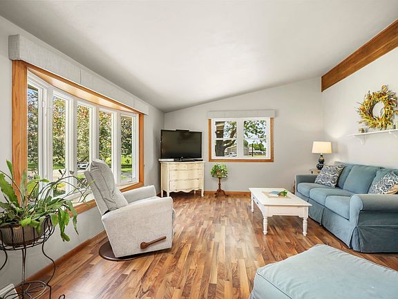 Move in ready home on 1.46+/- acres! Step inside the home with the large living room greeting you! Kitchen features plenty of counter and cabinetry, snack bar and an appliance package included. Adjacent is the dining room that leads you to the 4- season room with skylight and beautiful views of your private yard. Half bath is conveniently located by the back hall. 3 bedrooms all have ample sized closet space and the main bathroom features tile surround the tub/shower. Oversized heated detached garage is sure to please! This home has so much to offer!
