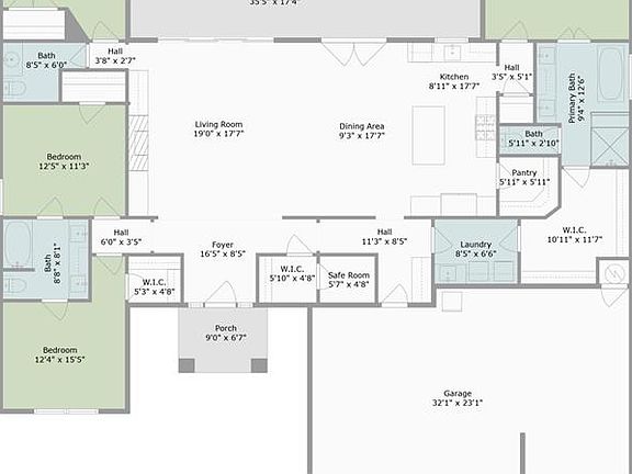 The luxurious primary suite includes a spa-inspired soaking tub, dual vanities, and a generous walk-in closet. Just off the living room, you’ll find a ventilated walk-in safe room designed to hold 6–8 people—discreetly tucked away for peace of mind.