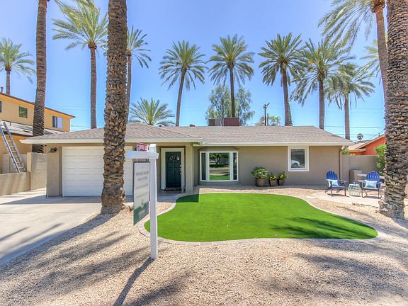 Wonderfully remodeled 3 bedroom, 3 bathroom, 2000 square foot home located in Arcadia Lite! Enter this home to find plenty of space for entertaining, neutral colors, and upgraded tile flooring throughout. The open kitchen includes granite counters, custom cabinets, stainless steel appliances, and a gas stove. The master bedroom offers wood tile, a full bathroom with beautiful dual sinks, separate shower and soaking tub. The backyard is perfectly landscaped with mature palm trees, synthetic grass, pavers, outdoor fireplace and a detached structure which can be used as a guest house or for storage. Nearby hotspots include LGO, Postinos, Ingo's, Camelback Mountain and the canal. Don't miss out on this incredible home, schedule a tour today!