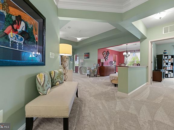 Well appointed 55+ age-qualified 1500 square foot top level, two bedroom, two bathroom  condominium in a secure elevator building in Gatherings of Jefferson Place. Built by Beazer Homes, the Chestnut model boasts 9 ft ceilings, foyer entrance, large living room with a tray ceiling leading to covered porch. Enjoy the spacious light filled, eat in corner kitchen with breakfast nook and built in desk, and 42" cabinets. Appliances include a stainless steel double convection oven with 6 burner gas range, built in microwave, dishwasher, and french door refrigerator with ice dispenser and bottom freezer. Primary bedroom boasts tray ceiling, large double windows, two primary closets - one being a walk in, primary bathroom includes a walk in glass shower with bench, double vanity, ceramic tile flooring, and linen closet. Generously sized second bedroom and tub/ shower combination in second bathroom. Newly installed, upgraded plush Carpet throughout. Kitchen and foyer with wood laminate flooring, bathrooms and laundry/ utility room with ceramic tile flooring. Four ceiling fans, Bose sound system hardwired speakers, and New HVAC 2023. Oversized attached garage labeled "S" on left side of the building with built in shelves for storage and access into building on main level. Community Clubhouse with patio and gazebo. Conveniently located to Long Gate Shopping center as well as easy access to all major routes. A must see!