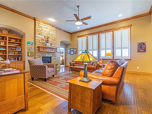 Immaculate home in Carrington. Living, study, formal dining, 3 beds, 2.5 BA + bonus room for guests, 2nd office, exercise/play room or artist studio. Arroyo Craftsman light fixtures in the entry, DR and LR are truly unique. Dream kitchen with great counter and storage space, dble ovens, potfiller, dual exhaust fans, pullout shelves, island w/microwave, large pantry + casual dining. Large master suite w/dual sinks, shower, garden tub, and walk-in closet. Comfortable bedrooms and large guest bath with 2 sinks ideal for family or guest use. Upgraded maple cabinetry and quartz countertops, carpeted BRs, wood through living areas, prem. tile baths and laundry and extensive storage throughout. Laundry has sink, storage, in-wall ironing and space to hang and fold. 3-car garage with storm shelter, closed storage cabinets + decked attic. Mature backyard, huge covered patio, nat'l gas line for grill, landscaped beds and large TuffShed. 2 community pools/clubhouses, ponds + walking trails.