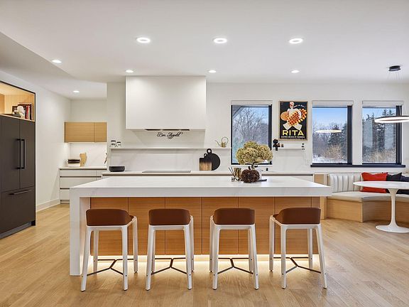 Step into this amazing contemporary 2020 Swanson custom-built home situated on a private 2-acre lot in desirable Orono neighborhood. Be dazzled by the fusion of craftsmanship, comfort and functionality. Warm minimalism at its best! The Heart of this home boasts a bright southern exposure living room with lift ceilings, a gourmet kitchen, custom-built cabinetry, a breakfast nook, huge waterfall island and a butler's pantry. The main floor is completed with a Zen master suite: laundry room, extensive walk-in closet, bathroom with rain and body showers. The deck & 3 season porch are perfect for entertaining. The lower level offers a family room with a wet bar, exercise/office & 3 bedrooms. Comfort elements (eg heated floors, automated shades, Bluetooth ceiling speakers) are available throughout this energy-efficient home. This house is a haven for every car enthusiast with a heated 5-stall garage, including a car lift and epoxy flooring. This home looks and feels new!