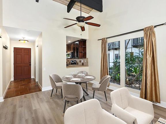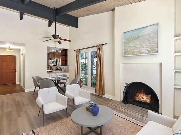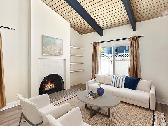 Extremely rare opportunity - charming single level end unit townhome in Loma Riviera with large patio. Live an indoor/outdoor lifestyle in this beautiful home conveniently located close to beaches, grocery stores, restaurants, transportation and all that Point Loma and Ocean Beach have to offer. Enjoy one of the best locations in the community with direct access to the dog run and no freeway noise. This home feels like a single family home with peaceful views of lawn and flowers from most windows and no one above or below you. New luxury vinyl plank floors, soaring vaulted ceilings, remodeled kitchen and bathroom. The nearly 300SF back patio increases your living space with room for a sitting area and dining area - a great spot to savor your morning coffee or entertain friends. Watch the Sea World fireworks from your kitchen window and front yard. Private laundry room off the back patio. The Loma Riviera community offers a beautiful pool, clubhouse, gorgeous landscaping and onsite management. Welcome home! (NOTE: photos with furniture have been virtually staged - there is no actual furniture in the property.)