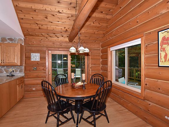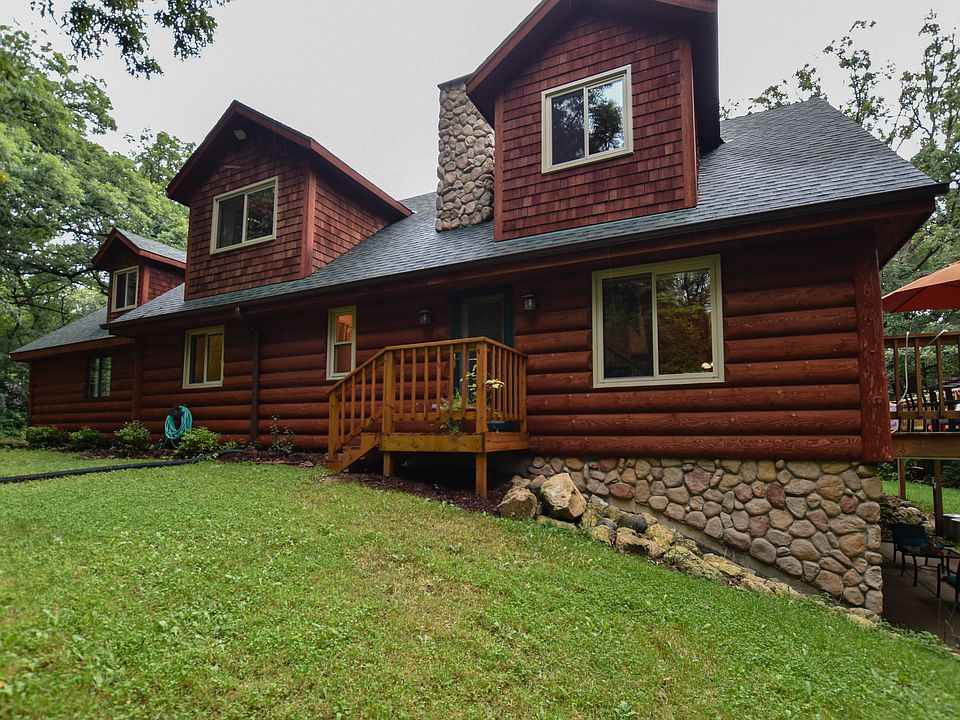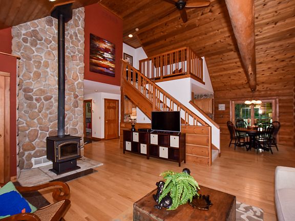 Gorgeous split log home tucked away on almost 3-acre private wooded lot with a 2.5 attached garage, a 1.5 detached garage and a 45X30 Cleary pole barn. Quality throughout this unique home that features; vaulted wood ceilings, hardwood floors, great room with fireplace, open concept kitchen with tons of granite counters, and a dinette that open to a wrap-around deck. Upper level boosts luxurious master bedroom suite with gas fireplace, walk in closet, loft and a large bonus room. Two first floor bedrooms with updated bath and double closets. This home also features a full walk-out lower level with a family room, bar, half bath and sliding glass doors to a large covered patio. Newer windows, furnace and air conditioner make this well maintained home a must see!!