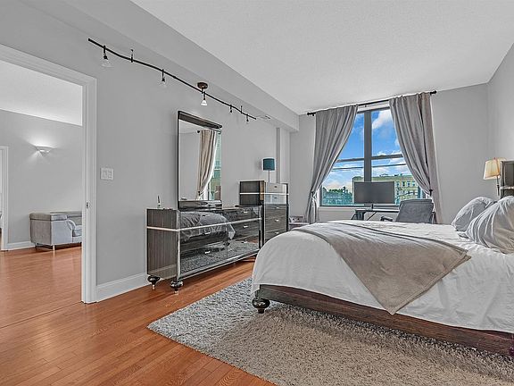 Stunning Two Bedroom, Two Bathroom Residence at the sought-after Park City Grand! This home boasts a sleek, modern kitchen with granite countertops, a breakfast bar peninsula, newer stainless-steel appliances, a tiled floor, ample cabinetry, and a custom tile backsplash. The spacious Primary Bedroom includes a custom walk-in closet with a built-in safe and an ensuite bath. The Second Bedroom is also generously sized, featuring a deep double closet. High ceilings and oversized windows flood the open layout with natural light, beautifully complemented by gorgeous hardwood floors, custom closets, central HVAC, recessed lighting, fresh paint, a new water heater, and ample storage, including entryway coat and pantry closets. Enjoy the convenience of deeded one-car garage parking. Park City Grand is ideally located on the border of Union City and Weehawken's Park Avenue, offering a pet-friendly, professionally managed building with two elevators, on-site security cameras, laundry facilities on every floor, and virtual doorman access. With easy access to NYC via bus and ferry, and proximity to the LightRail, parks, restaurants, Hoboken, and Weehawken's Tower Plaza shopping (including Lidl and Planet Fitness), this home has it all. Plus, just two blocks from Boulevard East, you'll have access to stunning Manhattan skyline views and waterfront access along the Gold Coast.