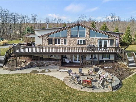 Welcome to contemporary living in the country! Enjoy a newer, modern home situated on 32 private acres providing views for miles. You'll feel peace and tranquility as you are captivated by walls of windows which overlook your property, own pond and pool. The first floor boasts 20 foot vaulted ceilings and an open, airy living/ dining space ideal for gatherings with friends and family. Click on the gas fireplace for added ambiance and warmth. The updated kitchen has everything you need to create gourmet meals and is open to the dining room so you're never left out. Two refrigerators assure plenty of space to keep enough food on hand for guests. The grill is conveniently located right outside on the deck! The deck will become a favorite spot to sit in your hot tub or just enjoy a drink or a book. The garage is currently converted into a game room for extra fun and entertainment as this home is currently an Air BNB! The master suite and another large bed and bath are conveniently located on the first floor. Take a walk downstairs to the walkout lower level & you'll find a living room & 3 more large bedrooms, full bath, laundry & storage. Delayed showings 3-27, negotiations 4-5@2p.