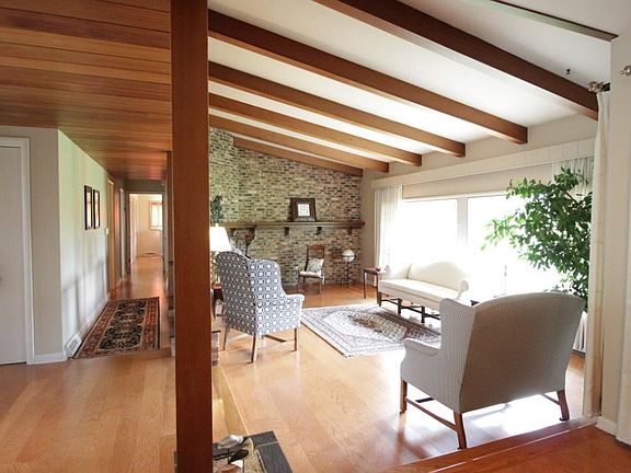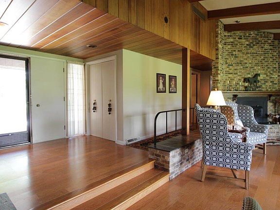 Beautiful, distinctive and attractive 2,076 Sq-Ft Mid Century Ranch designed by Schenkel and Lawrence Architects. Exterior spaces were planned with covered, open and screened, porches to take full advantage of the privacy and the views. Located on the golf course at Orchard Ridge Country club near the 14th Tee. Stylish mix of brick and wood exterior. Slate tile front porch, double entry door. Hardwood foyer with wood clad ceiling. Sunken living room with big windows, high ceilings, exposed beams, angular brick fireplace, hardwood mantel, hardwood floors. Big Kitchen with access to the large screen room, open to the family room and den. Engineered hardwood floors about 7 years old. Picket fenced area in side yard, perfect for pets. Carrier High efficiency Furnace. Roof new in 2015. City Water and Sewer. Also well water system on site.