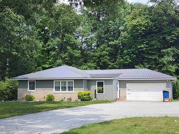 Country living in Eastbrook school system with quick access to I69. Adorable, vinyl and Bedford stone ranch home located on a partially wooded 1 acre lot. This 3 bedrooms, 2 bath home has been updated and features a great room with newer paint, light fixtures and vinyl plank flooring. Large Eat-in kitchen with newer vinyl flooring, white cabinets, light fixtures, hardware and SS appliances. The bathrooms have been updated with new flooring, paint and cabinets. 2 of the bedrooms have original hardwood floors. Newer Geothermal heating, metal roof and windows. 1740 sq foot pole barn with cement floor, gas forced heat, 2 -10 ft overhead doors, attic storage, utility sink, covered porch, and workbenches. Plumbed for welding equipment. There is also an attached lean-to with almost 400 sq feet for more storage. Virtually maintenance free and low cost living!