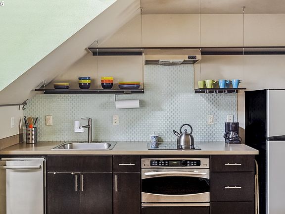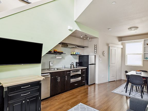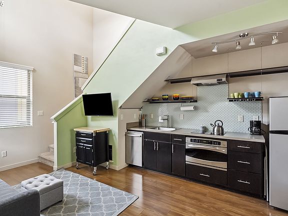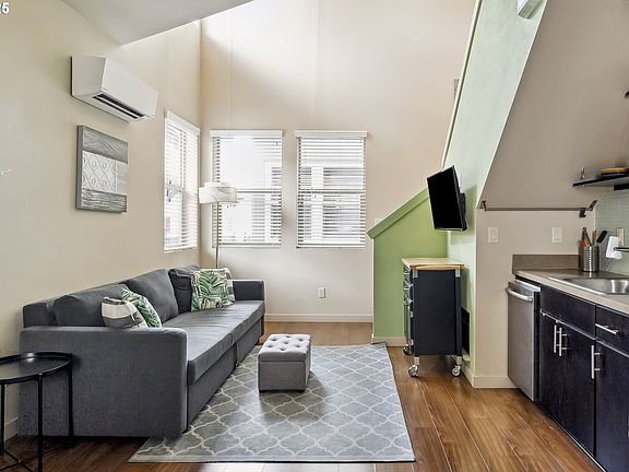 Multiple opportunities! This modern and energy-efficient condo offers the flexibility to live, work, or invest in one of SE Portland’s most vibrant neighborhoods. Whether it be a first or second home, a remote office, or an investment property, this space is ideal for anyone seeking an intentionally urban, low-impact lifestyle. Step inside to discover an open-concept living area with a fully-equipped kitchen, full main floor bath for guests, and energy-efficient mini-split heating/AC. Upstairs, you'll find a spacious lofted bedroom with an en-suite bathroom and a convenient stackable washer/dryer. Enjoy your own private south-facing balcony that overlooks the courtyard. The condo is tucked away from the street, providing a quiet retreat with easy access to everything SE Portland has to offer, including cafes, popular dining spots, parks, and public transit. The Division 43 community is designed with sustainability in mind, featuring solar panels for courtyard lighting, a rainwater irrigation system, durable hard-plank siding, and secure bike parking. With no rental cap (30-day minimum), this property offers flexibility for investors. CM2 zoning opens the door to many potential uses. Sellers are open to including all furnishings upon request and had been renting the property for $2,000/mo. The HOA welcomes both cats and dogs, ensuring that your furry friends are welcome. This is a must-see opportunity for anyone seeking modern, convenient, and eco-conscious living in an unbeatable location. Don’t miss out!