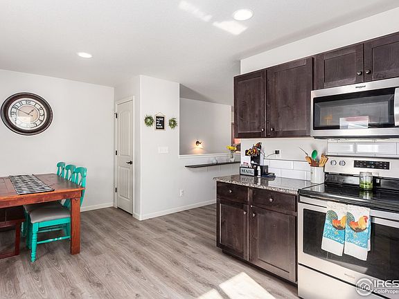 Picturesque home in sunny Evans community! This home is absolutely adorable right from the very first steps onto the front porch. Beautiful ash wood-inspired floors run from the living room throughout the kitchen and dining area- which is a fantastic set up for entertaining. The living room is centered around a tile-framed gas fireplace with shelving to display your knick-knacks. The kitchen has been designed with complementing dark country wood cabinets and speckled granite countertops. White subway tile backsplash mid-rises between them and the appliances are matching Whirlpool stainless steel. Off the dining room is access to the back patio. Rooms have an abundance of natural light. In the master bedroom, you'll find plenty of room for your things with a walk-in closet and even an ensuite bathroom.The unfinished basement could yield another bedroom or a fantastic entertaining room. Around back, is an entertaining space and the attached garage. This could be the home of your dreams!