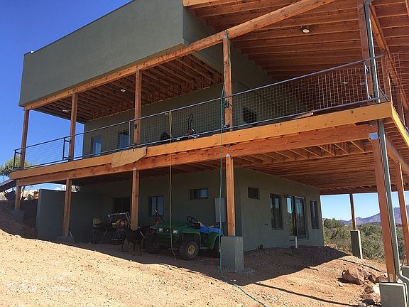 Incredible eco-friendly and sustainable home, stunning acreage, best views in the county, corral and stalls and a 3800 sf organic, income producing deep water aquaponic system greenhouse with plc touch panel controls. 400 amp service run to house and 150 amp service to greenhouse and well.. Grow your own and sell organic vegetables and enjoy the views with clean air and abundant/great tasting well water. Call me, the owner for personal and detailed appointment and showing. Tom (928)607-2804 3/2 Territorial 2 story 1800 sf home is built on the 60 foot hill of this property. In floor hydronic heat and Mitsubishi mini-split ac/heat pump provide very cost efficient climate control in this fire proof ICF block and synthetic (colored) stucco home. Parapet tops capped in powder coated 28 ga custom made aluminum. 340 degree 10+ miles view of Granite Mountain and 60 MILE VIEW OF San Francisco Peaks (FLAGSTAFF) This house is constructed of ICF block, a sustainable and fireproof building material. Adjacent 4.8 acres with a well are available for $500.000. See this video for more information; https://theperfectblock.com/ https://youtu.be/AtwJ3B21cMU