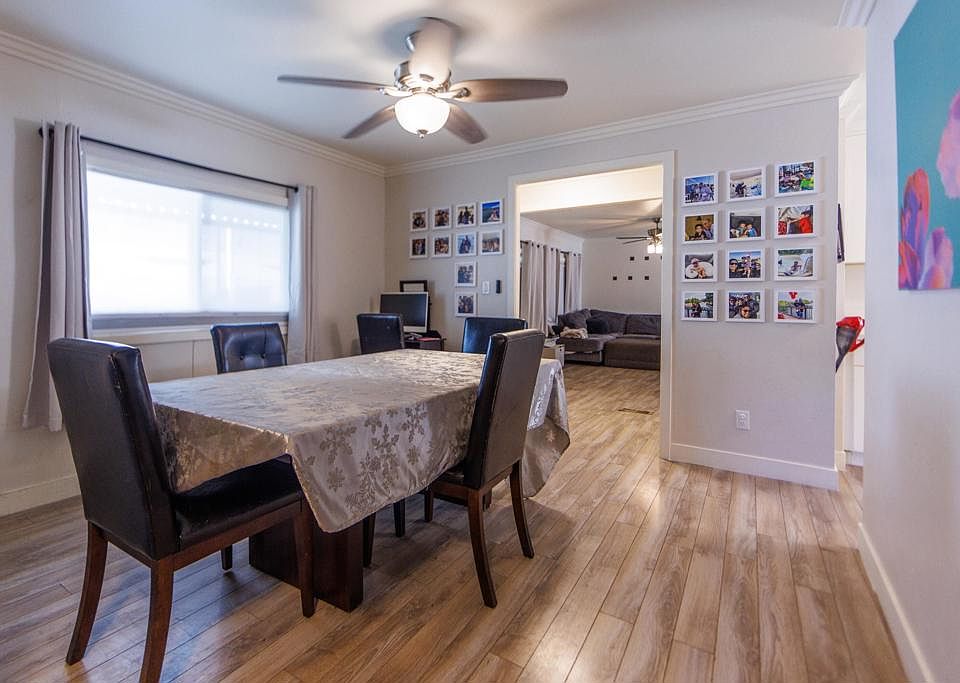 Welcome to Portola Palms in Palm Desert--an inviting community located directly across from Abraham Elementary School, complete with a pool, spa, and clubhouse for residents to enjoy. This manufactured home is set on a permanent foundation, and you own the land--with no age restrictions, making it ideal for families, retirees, or investors. The home features 3 bedrooms and 2 full bathrooms, including a spacious primary suite with a walk-in closet and a dual-sink vanity. Inside, you'll find a comfortable living room, formal dining area, and a cozy kitchen nook with stainless steel appliances. Manufactured wood flooring runs throughout the main living areas, adding warmth and style. Step outside to a covered side porch and fenced area--perfect for kids and pets to play safely. With low HOA dues that include trash and sewer, this is a fantastic opportunity for affordable homeownership in the heart of Palm Desert. A smart starter home or a solid investment!