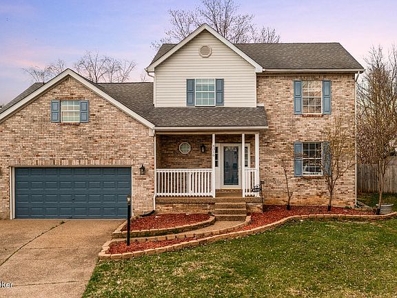 This beautifully maintained 2-story home is nestled in a quiet cul-de-sac, offering both comfort and convenience. Located just minutes from Springhurst, The Summit, Old Brownsboro Crossing, and major highways (I-256, I-71), this home features an open floor plan perfect for modern living. Hardwood floors lead to the living and dining areas, separated by a charming plant wall. The spacious kitchen offers a large island, ample storage, seating for four, a planning desk, and a large pantry. The primary bedroom includes two closets, one a walk-in. The partially finished lower level provides a laundry room and versatile recreation space. Enjoy a private deck with built-in seating and a covered patio, ideal for entertaining. The professionally landscaped and fenced yard offers ultimate privacy.