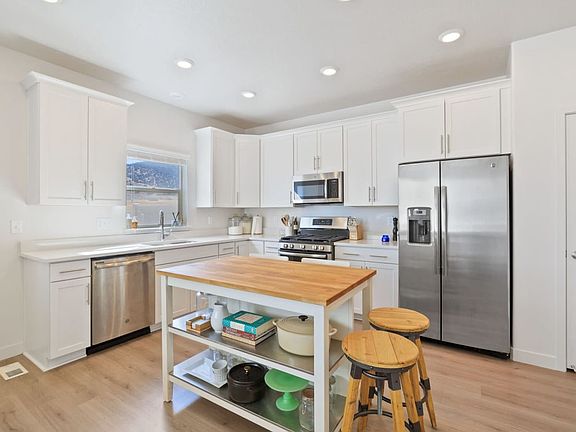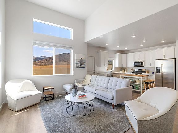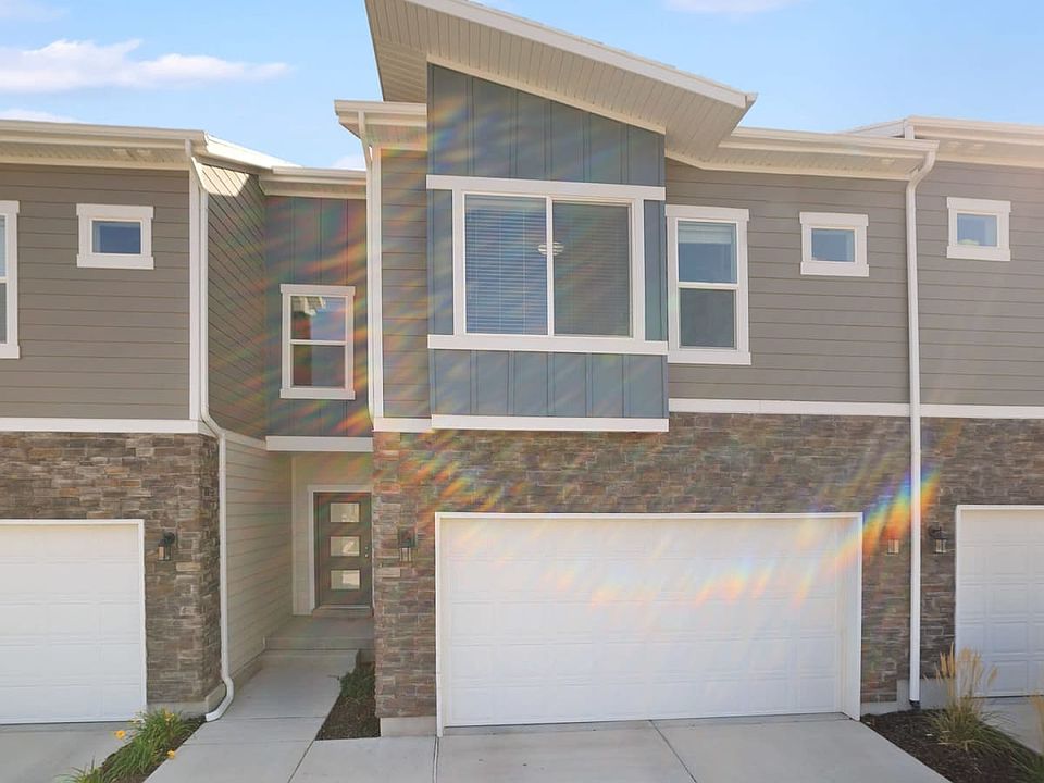 Beautiful 3 story townhome with amazing views of the Lake mountains and Utah Lake. This like brand new townhome has all of the upgrades including quartz countertops, LVP flooring, vaulted 14 foot ceilings in the family room, 9 foot ceilings in the kitchen, attached 2 car garage, full basement, smart home automation, tons of natural light and an open airy floor plan. There are no homes behind this unit which allows for open views of the mountains and easy access to hiking and biking trails.