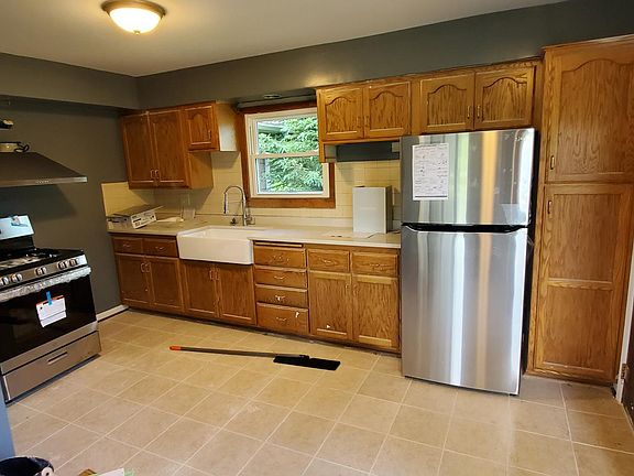 Fully Remodeled Home with fresh paint throughout. 4-bedroom 1-bathroom 1200 sq. ft. of livable space. New windows, new Roof on house and garage. Located on no through street across from a park on almost half an acre. 2 car garage with extra outdoor parking spaces. Quarts counter tops and Stainless-steel appliances. New Luxury Vinyl Plank flooring throughout. Tile in kitchen and bath. Heated floor in Master bedroom. Large partial fenced yard. $50 per pet with a max of 2. Small dogs or cats ok. No evictions, No bankruptcy, minimum credit score 650, income of 4 times the rent. Tenants are responsible for lawn and snow and all utilities. Security deposit required. 1 year lease, no smoking, $50 per pet with a max of 2. Small dogs or cats ok. No evictions, No bankruptcy, minimum credit score 650, income of 4 times the rent. Tenants are responsible for lawn and snow and all utilities. Security deposit required.