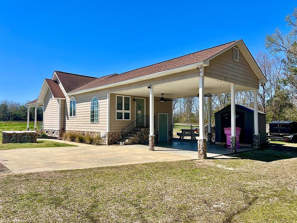 Beautiful country living sitting on over an acre of land! Home has fenced in backyard and place for gardening. Home has hardiplank on sides and beautiful stone foundation with stone steps leading into home. Home has open concept, family room with fireplace and gas logs, kitchen has granite countertops, also a bar for eat in area, dining room, laundry room, primary bedroom has 2 large closets, bathroom with double sinks and beautiful tile shower with glass doors, the other bedroom is located off of the family room and beside extra bathroom. It is a beautiful home and it is a must see in person to appreciate this home and its setting.