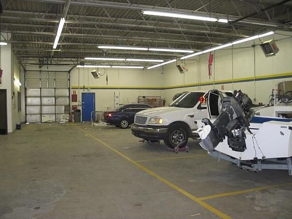 Business Opportunity!!! Full operating body shop with Garmat Zephyr Paint Booth, Chief S21 Liner, & Velocity Measuring System. Building #1 is 7,200 sq.ft with 600 sq.ft office space. Building #2 is 2,800 sq.ft. Total of 8 overhead doors, 17 parking spaces, and more. Financials are available. Family owned business for almost 30 years.