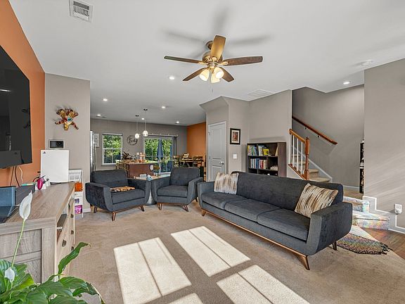 This 3-bedroom, 2.5-bath home boasts an open-concept layout and a spacious eat-in kitchen complete with stainless steel appliances and a washer/dryer. The kitchen is a chef’s dream featuring a large island with extra storage, tile backsplash, pantry, and granite countertops.