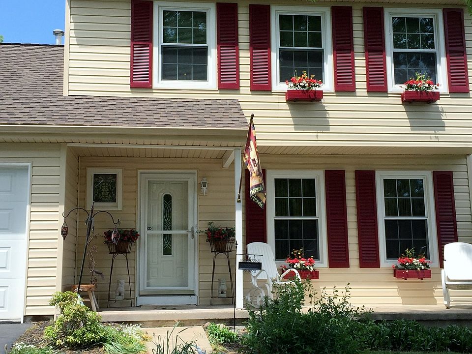 Welcome to this cute 2 story colonial in Pheasant Run. As you enter the front porch with window boxes below the windows you are invited inside to a nice size living room that opens to a large eat in kitchen with granite counter tops and tile backsplash and all stainless steel appliances included with the home. There are plenty of cabinets and counter space for lots of storage and work space. Updated laminate floors show continuity through out the first floor. Off the kitchen is a family room with vaulted ceiling and a tile surrounded wood burning fireplace and sliders to a deck with retractable awning for entertaining. The yard is fenced in for pets and a shed beyond the fence is included also. Next to the kitchen is a updated tile floor half bath with laundry area and the one car garage has been finished into another bedroom but the garage door is still intact. It could also be an office too. Upstairs you will find 3 nice bedrooms with a full updated bath. This home has a new roof in 2013, all new triple pane windows and new vinyl siding in 2015. The HVAC system is updated recently also. The basement is a blank palette to finish for additional living space. This house is located among mature trees and landscaping and ready for immediate possessions.