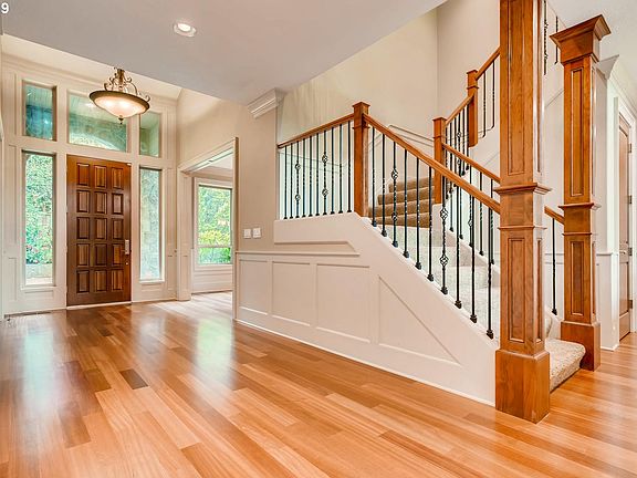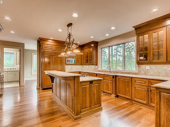 Seller will consider lower priced PDX area trade! Park like setting on 1/3 acre w/ 3 lake easements! High quality craftsmanship in walkable location! Main floor suite. Chef's kitchen w/ Brazilian cherry floors, raised panel cherry cabs, slab granite, & top of the line appliances. Main floor den/office w/ extensive built-ins & fplc. Enviable master suite w/ fplc and relaxing en-suite! Great rm w/ soaring ceilings & wall of windows.
