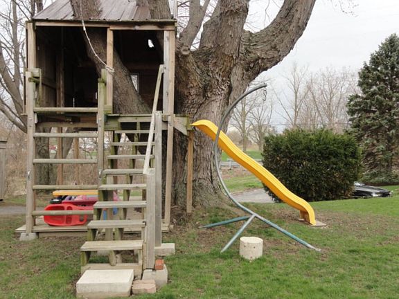 This home is situated in a country setting with Mills Creek running nearby. It sets on a .6875 acre lot. It has 3 bedrooms, open concept kitchen/living room with cathedral ceiling and natural gas fireplace, 1 full and 1 half bath, laundry room, 2 car attached garage and paved drive. Family room located in the basement with room for storage, carpeted and electric fireplace. Freshly painted, new kitchen appliances, updated kitchen. Also a 28' X 32' pole building, above ground pool and child's tree house.
