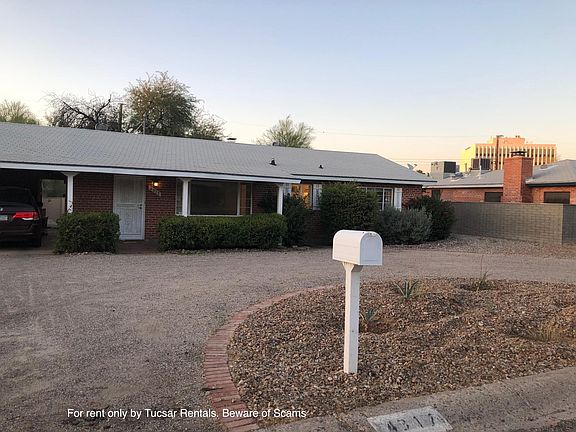 Three bedrooms, two bath, brick home on approx. 1/4 acre! Detached 14x16 building with many possible uses such as home office, workshop, studio, storage, etc. Detached laundry room, plus approx. 8x10 storage building. Third bedroom is approx. 10.5x23 with entrance to backyard and can also be used as a large family room or home office. . Great central location. 3.5 miles to the University of Arizona. 4 miles to downtown. 0.5 mile to Randolph Golf Park and El Con Mall. Short drive to TMC, Banner and Carondelet hospitals. Very nice residential neighborhood. . Large backyard with block wall and additional fenced in yard. Beautifully landscaped with mature plants in automatic irrigation system. Circular driveway. Granite counter tops. A/C. Kitchen skylight. . Covered patios on the front and back. . Small pets allowed with a pet fee. . Application process includes criminal background check. Minimum 2,5 percent the rent as income to qualify. Please do not contact us if you do not qualify. Managed by Tucsar Rentals only. No smoking. Small pets allowed with a pet rent. Security deposit of $1,900.