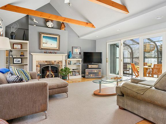 Located in the quaint village of Cummaquid, this custom designed 4 bedroom post and beam cape is perfectly sited on a large 1/2 acre lot. The bright open floor plan is ideal for entertaining and features a family room with wood burning fireplace, custom built-ins, cathedral beamed ceilings and the french door leading to the 3 season solarium. The gourmet chefs kitchen offers granite counters, walk-in pantry, custom cabinets, a center island stainless steel appliances including the gas Wolf cooktop. The living and dining rooms both facing the 2nd fireplace and the master suite with granite and glass bath large walk-in closet complete the 1st floor. Upstairs are two additional bedrooms and a just completed second full bath and above the attached two-car garage is the 4th bedroom and 3rd bath. Recent updates include a brand new architectural roof and new siding. The nicely landscaped and irrigated grounds features stone walls and brick walkways and are the perfect spot to enjoy family gatherings. All located a short ride to the fabulous shops restaurants of quaint Barnstable Village and a leisurely stroll to both the woodland trails of Mass Audubon picturesque Bone Hill beach.