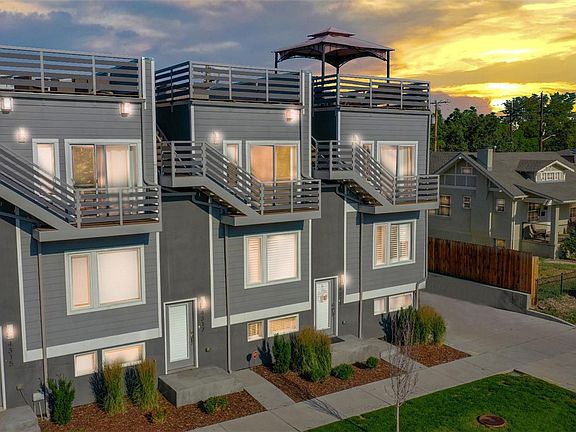 This Is It!! - Looking for modern construction in amazing location with all the perks? This Sunnyside Townhome has it all and no expense spared during creation - Luxury stainless steel GE Cafe upgraded appliances, sleek ceiling fans, plantation blinds and window treatments, quartz Kitchen countertops with matching quartz counters in master bathroom & guest bathroom, square Kohler undermount sink, Moen faucets and bath hardware, high-efficiency GE washer & dryer, electric fireplace, fine hardwood floors throughout the entire main floor, Internet wired and security cameras. A nice perk for this floorplan is Both bedrooms have their own bathroom and walk-in closet access and Finally - Rooftop Deck with Hot Tub and both City and Mountain Views!! Mere minutes from Downtown, highway access, local parks & schools and walking distance from the Light Rail - this home offers you Everything!