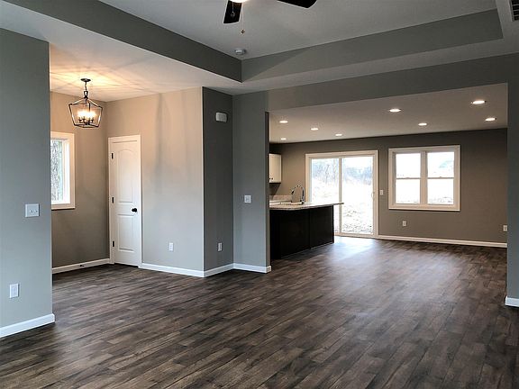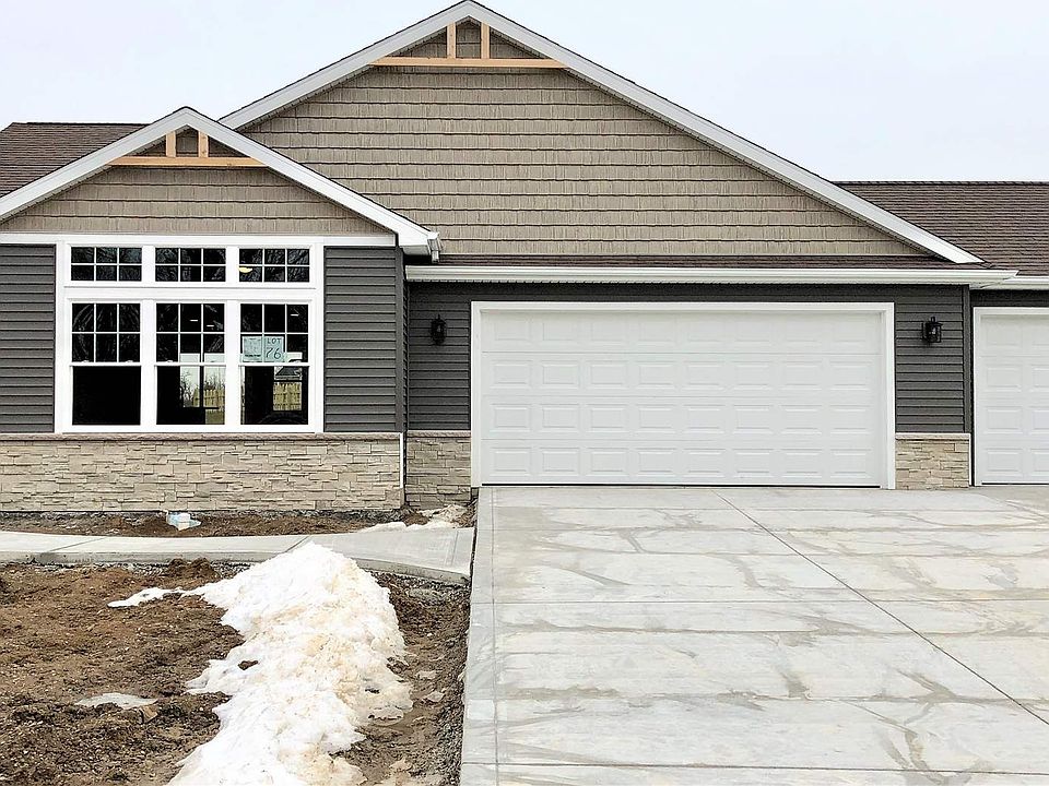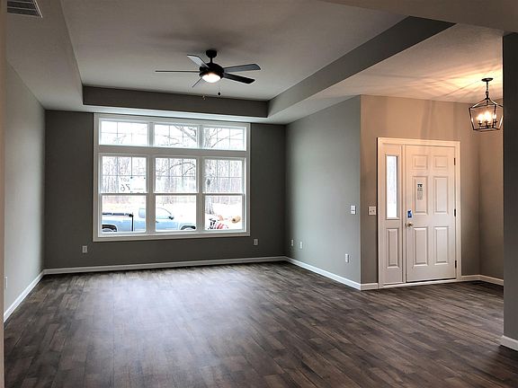 Stunning new 3 bedroom, 2 bathroom ranch offered by Fall Creek Homes! The craftsman style exterior features beautiful stone work, rustic decorative gable trim, cedar shakes, covered entry and spacious 3 car garage. Step into the gorgeous wood plank vinyl floors and enjoy the spacious open concept great room with tray ceilings and oversized windows that let in exceptional natural light. The open kitchen and dining area features a large island with seating accommodations, elegant can lighting throughout, and 6 foot sliding doors to the covered back patio that overlooks the spacious and partially wooded backyard. Enjoy the master bedroom with a custom walk-in closet, large en suite, linen closet and dual bowl vanity. Don't miss out on this beautiful home - schedule your personal tour today!