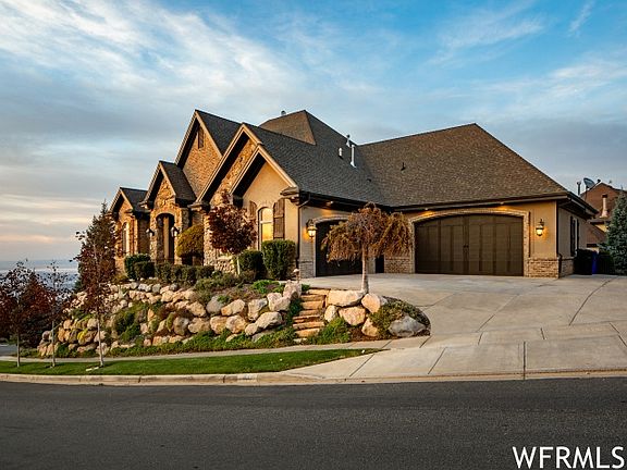 Custom built rambler. Beautiful lake and mountain views!! Quality construction, spacious master suite with vaulted ceilings, see through fireplace to the master bathroom, updated master bathroom with air tub and euro shower doors and a walkin closet. New paint and carpet. Beautiful hardwood floors, stain grade finishes, exposed wood beams, perfect home for teenagers with a huge basement family room, theater room, large bedrooms, gym and a sports court. Tons of storage, 1,443 Sqft garage with epoxy floors. Plus RV parking. Additional .39 acre separate building lot available next door with the purchase of this home (making a total of .80 acres) Great location within 15 minutes to downtown Salt Lake and the Airport.