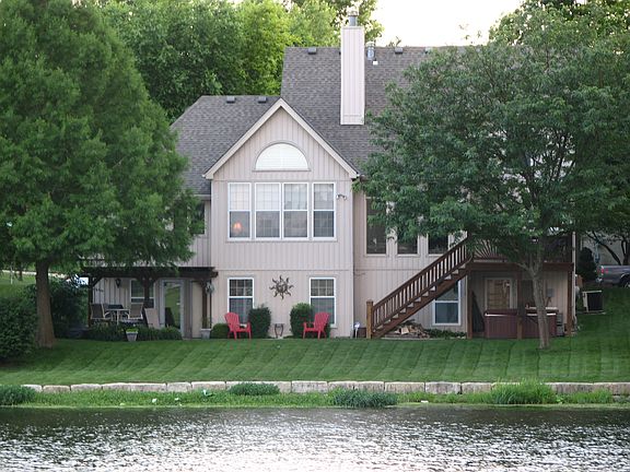 Harbor Cove at Raintree Lake on Duck Pond! Great story and half floor plan! 4 bedroom, 3.5 bath. Remodeled in 2012! Large master bedroom and newly remodeled master bath with tiled walk in shower. Beautiful Lake Views from the Great Room and Kitchen! Scenic loft overlooking the entry and great room. New wrought iron spindles and wood end caps on staircase. Remodeled kitchen with new granite countertops, back splash and stainless steel appliances! See through fireplace with new tile in the great room! New hardwood on first floor and carpet throughout! Some new windows! Plantation shutters on the front of home. New Comp Roof in 2011! Finished Walk-Out Basement with fourth bedroom and newly remodeled full bath! Deck and patio with pergola with eastern exposures for pleasant evenings overlooking scenic water views! Landscaped with a sprinkler system. Stucco front, vinyl sides and back for a low maintenance exterior! Lee's Summit Schools, Lake Access for Boat, Neighborhood Pool!