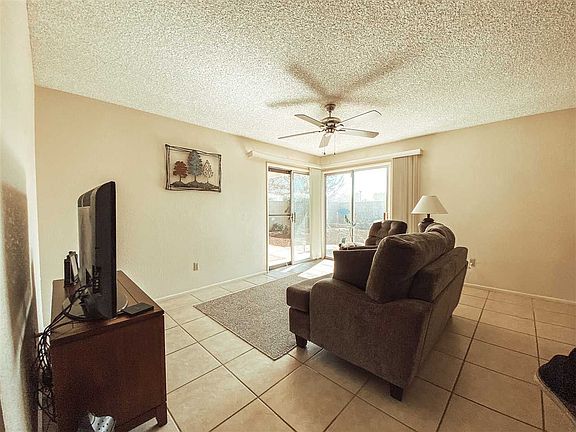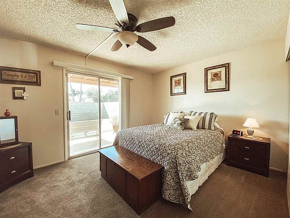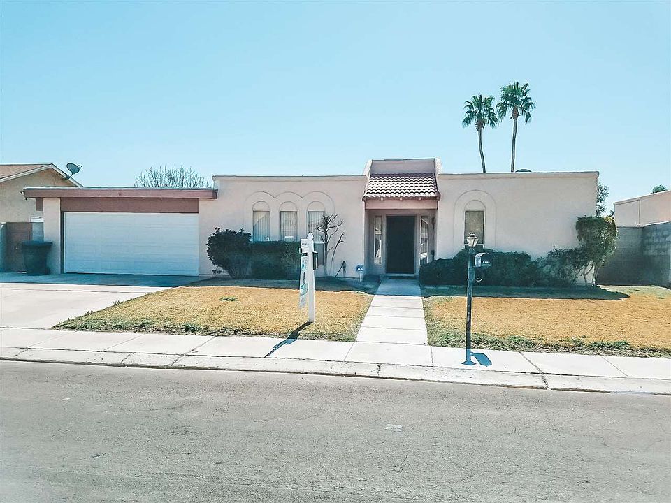 Single Story Home boasts an open floor plan with tile throughout living spaces & carpet in bedrooms. Large kitchen with peninsula breakfast bar, dishwasher & plenty of storage. Laundry off the kitchen. Living Room with 2 sliders out to covered patio. Split floor plan with master off the back & sliders to private covered patio, remodeled en suite with separate, tiled shower. 2 additional spacious bedrooms & full bath. Large back yard with grass & rock. Stunning, open view! 2 Car Garage with storage.