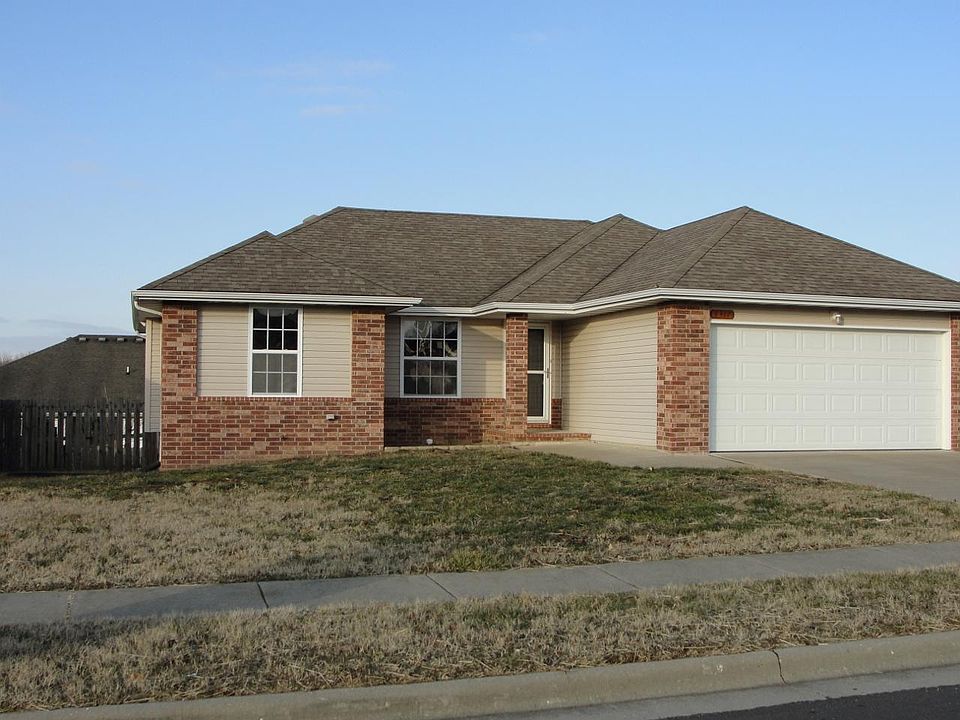 Nice clean home in newer neighborhood with quick access to I-44, Chestnut Expwy & West ByPass. Living room features nice laminate flooring and is open to dining area. Master bedroom & bath is separated from other two bedrooms and all have good neutral-color carpet. All appliances are included: refrigerator, stove, dishwasher and brand new washer/dryer. Fenced backyard with iron pergola/canopy. Garage has built in shelving for extra storage. No smoking inside the house or garage. Renter is responsible for utilities, trash service and lawnmowing.