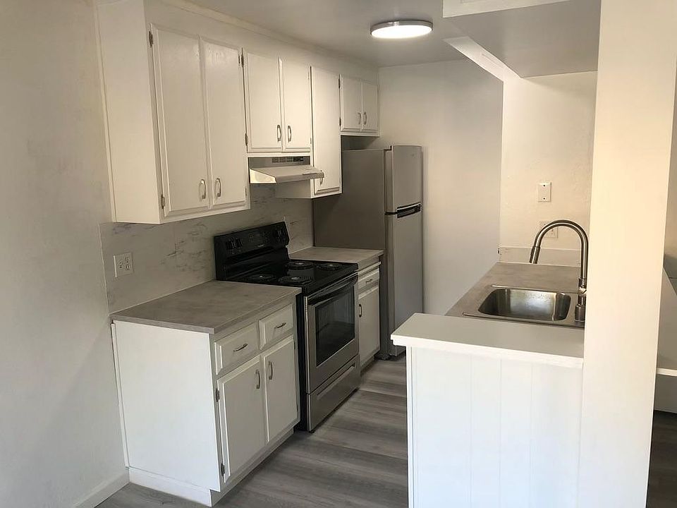 This 2 bedrooms and 1 bath is part of a fourplex apartment complex. It is conveniently located by Grimmer and Auto Mall Parkway. It is two story where the kitchen, family and dining rooms are downstairs, bathroom and 2 bedrooms are upstairs. It has a shared 1 car garage and has its own private door entrance with a small private patio. It is newly renovated with new kitchen appliances, new laminate wood flooring, and new carpet throughout the unit. The interior has been freshly painted. Kitchen has brand new dishwasher, refrigerator and oven. Shared garage is for one car. Plenty of parking at the apartment complex. Laundry (coin operated washer and dryer) is shared and on-site. $2,200 per month. Security deposit= $2,200. One year lease. Utilities are not included except garbage and water. Renters pay internet, electric and gas. Water is included. Coin operated laundry on-site. If there are pets, pet deposit will be needed.