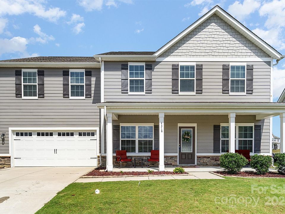 WATCH VIDEO TOUR (to find on Zillow go to facts & features - show more)! Incredibly spacious and open 5 bedroom home with fully fenced in backyard in a family friendly community! Home welcomes you in past covered rocking chair front porch into formal entryway with flex room/ private office to your left. As you continue in, you'll find the main living area fully open with tons of natural light, wood plank flooring, and recessed lighting throughout. Large kitchen has tons of cabinets, counter space & full pantry for endless storage + center island with breakfast bar seating & matching S.S appliances including gas range. Main level also has full bed & bath ideal for in-law suite or guests. Upstairs find a large loft landing, ideal for play area or media space. Primary bedroom has vaulted ceiling and attached spa-like bath with stand-up glass shower, soaking tub, dual sinks & walk-in closet. 3 additional rooms upstairs and full hall bath makes this the perfect home for hosting large family gatherings. Out back, sellers have added an awning to the patio for year-round comfort plus a full fence great for privacy. HUGE 3 car garage also provides unlimited storage! Community features outdoor pool, playground, and splash-pad for incredible summer memories. All within a great Union County School zone & perfectly situated between Matthews & Monroe for convenience to everything! PHOTOS TO COME!