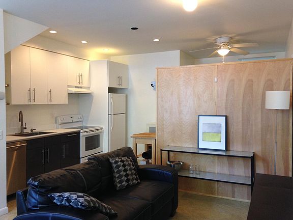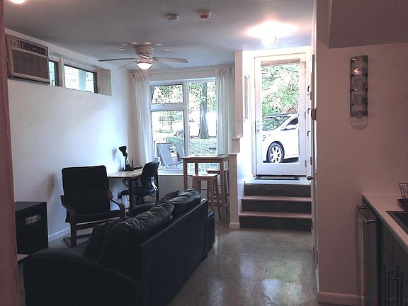 Private living space, with separate entry, on walk-out lower level of private home in quiet, tree-lined, residential neighborhood. Very close (1/2 - 3/4 mi) to Bethesda Metro, Starbucks, Trader Joe's, Giant, Safeway, CVS, banks, movie theater, health clubs, Capital Crescent Trail, and the many restaurants, bars and shopping in downtown Bethesda. Fully furnished including bed frame (and mattress, if desired), large mirrored wardrobe, rolling wood cart, lounge chair and footstool, microwave cart and nightstand. Separate sleeping and living areas. Updated, full kitchen (dishwasher, garbage disposal, oven, microwave, refrig/freezer), plus utensils, pots & pans, dishware, and glassware. High ceilings. Large front windows. Bike storage area. Radiant floor heating, efficient air conditioner, 2 ceiling fans, washer / dryer. Includes all utilities and WiFi with separate router. (Note: there is no landline phone.) Easy on-street parking directly in front. Non-smokers only, please. Pets allowed on a case-by-case basis, with pet deposit.