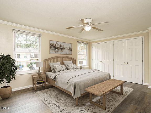Welcome to this charming end-unit townhouse nestled near downtown Raleigh and close to NC State with convenient access to the Wolfline bus service to NC State, the Beltline and bus lines. Step inside to find beautiful, custom-built cabinets with soft-close dovetail drawers and doors in the kitchen and bathrooms. This inviting residence offers a perfect blend of comfort and style, featuring a spacious primary, 2 additional bedrooms and 2.5 bathrooms. The open floor plan seamlessly connects the living, dining, and kitchen areas, creating an ideal space for gatherings and everyday living. Fresh interior paint throughout. Lots of upgrades! Elegant crown molding just installed provides a luxury finish. NO bi-fold doors - all replaced with 6-panel doors. Only the stairs are carpet - ceramic tile in kitchen and bathrooms, hardwoods in DR and LVP in primary, laminate in bedrooms. Window-World windows throughout. Enjoy a private fenced backyard ideal for outdoor relaxation, along with an expanded brick patio perfect for entertaining. Plus, you'll benefit from a shed for additional storage. Brand new dishwasher. Recent HVAC. Refrigerator, washer, dryer convey. Two assigned parking spaces, ample visitor spaces are adjacent. Great investment opportunity or perfect first home! Rent potential $1,550-$2,250/month. Don't miss the opportunity to make this delightful townhouse your new home. Experience the charm of this Raleigh gem!